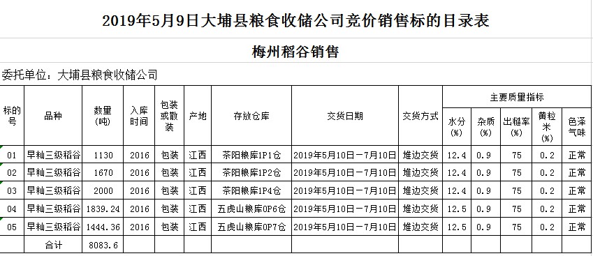 交易時(shí)間和地點(diǎn):2019年5月9日(星期四)上午10時(shí)。廣東省梅州市彬芳大道南161號(hào)梅州市糧食交易中心3樓。