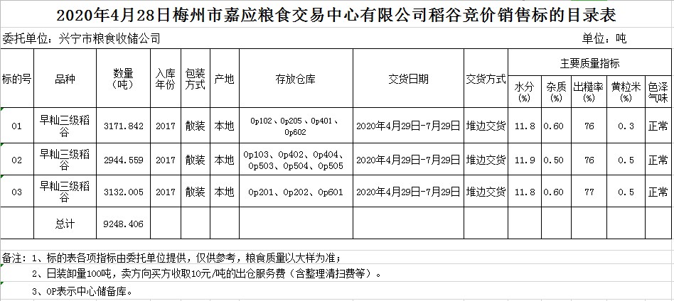 交易時(shí)間和地點(diǎn):2020年4月28日(星期二)上午10時(shí)。廣東省梅州市彬芳大道南161號(hào)梅州市糧食交易中心3樓。