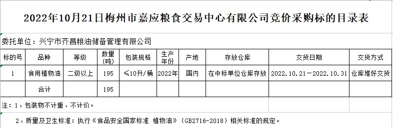 興寧市2022年本級(jí)成品糧油動(dòng)態(tài)儲(chǔ)備競(jìng)價(jià)采購(gòu)及包干輪換費(fèi)用公開(kāi)招投標(biāo)公告