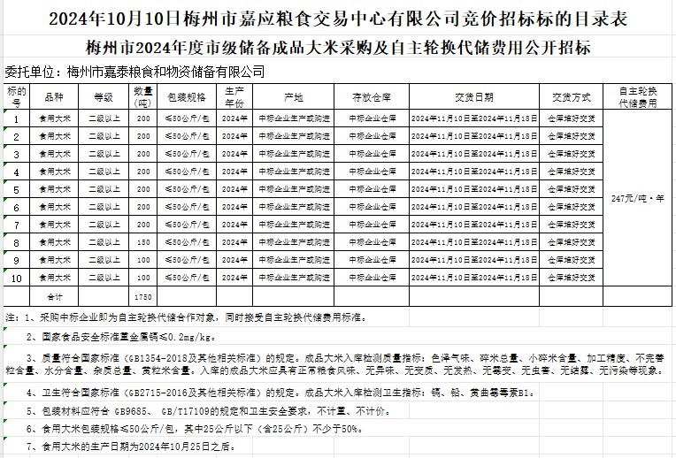 梅州市2024年度市級(jí)儲(chǔ)備成品大米采購(gòu)及自主輪換代儲(chǔ)費(fèi)用公開招標(biāo)公告